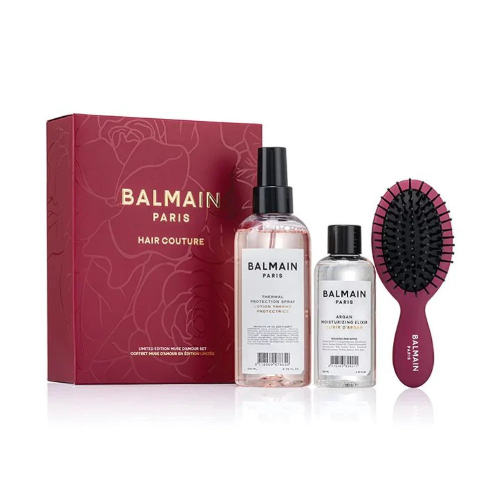 Discover the benefits of the Limited Edition Muse D'Amour Set for your haircare routine. This exclusive set includes the Thermal Protection Spray, Argan Moisturising Elixir, and Detangling Spa Brush Mini, making it ideal for anyone seeking beautifully nourished and healthy hair with a brilliant shine.