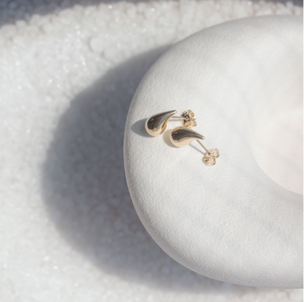 FRANCES GRACE 10K YELLOW GOLD CHUNKY 12MM TEAR DROP STUD EARRINGS