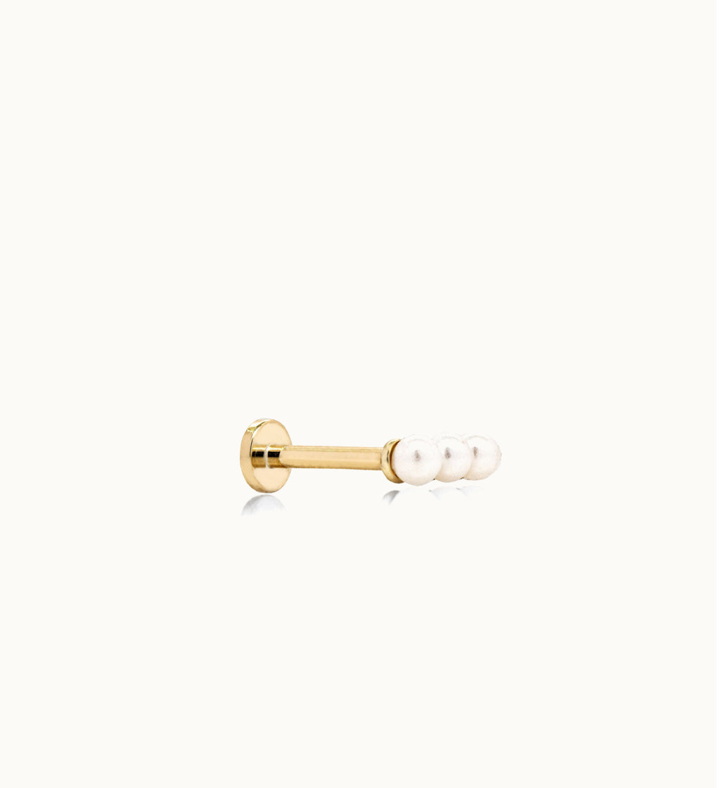 FRANCES GRACE 14K Yellow Gold Trio Pearl Stud – Flat Screwback (Single Piece)